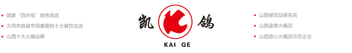 公司自成立以來,已先后榮獲******、省、市各級人民政府和有關(guān)部門頒發(fā)的“工人先鋒號”、“四葉級綠色餐飲企業(yè)”“全省就業(yè)再就業(yè)工作先進單位”“山西烹飪餐飲飯店30年功勛企業(yè)”、“山西餐飲品牌名店”、“山西******火鍋店”“山西十大火鍋品牌”“山西放心火鍋店示范企業(yè)”“大同旅游特色美食體驗店”等榮譽。2023年“凱鴿火鍋宴”“西京全羊宴”,被******中餐業(yè)聯(lián)合會授予“國際中餐名宴”稱號。2020年和2022年累計為抗擊疫情捐贈餐費約136.8萬元。